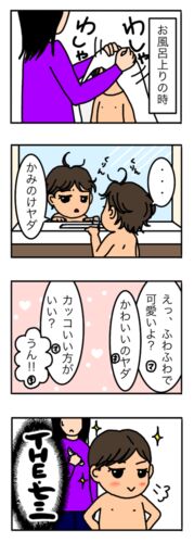 2016年生まれの息子キッチのエピソード漫画20話目。4コマ「お年頃」の話。
